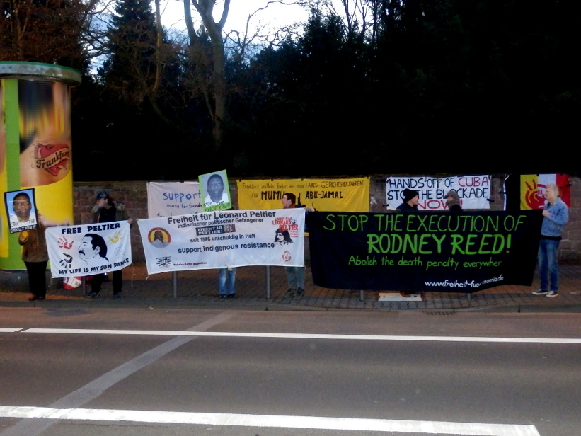 Protesters in Frankfurt am Main demand justice for Rodney Reed, Mumia Abu Jamal, and Leonard Peltier
