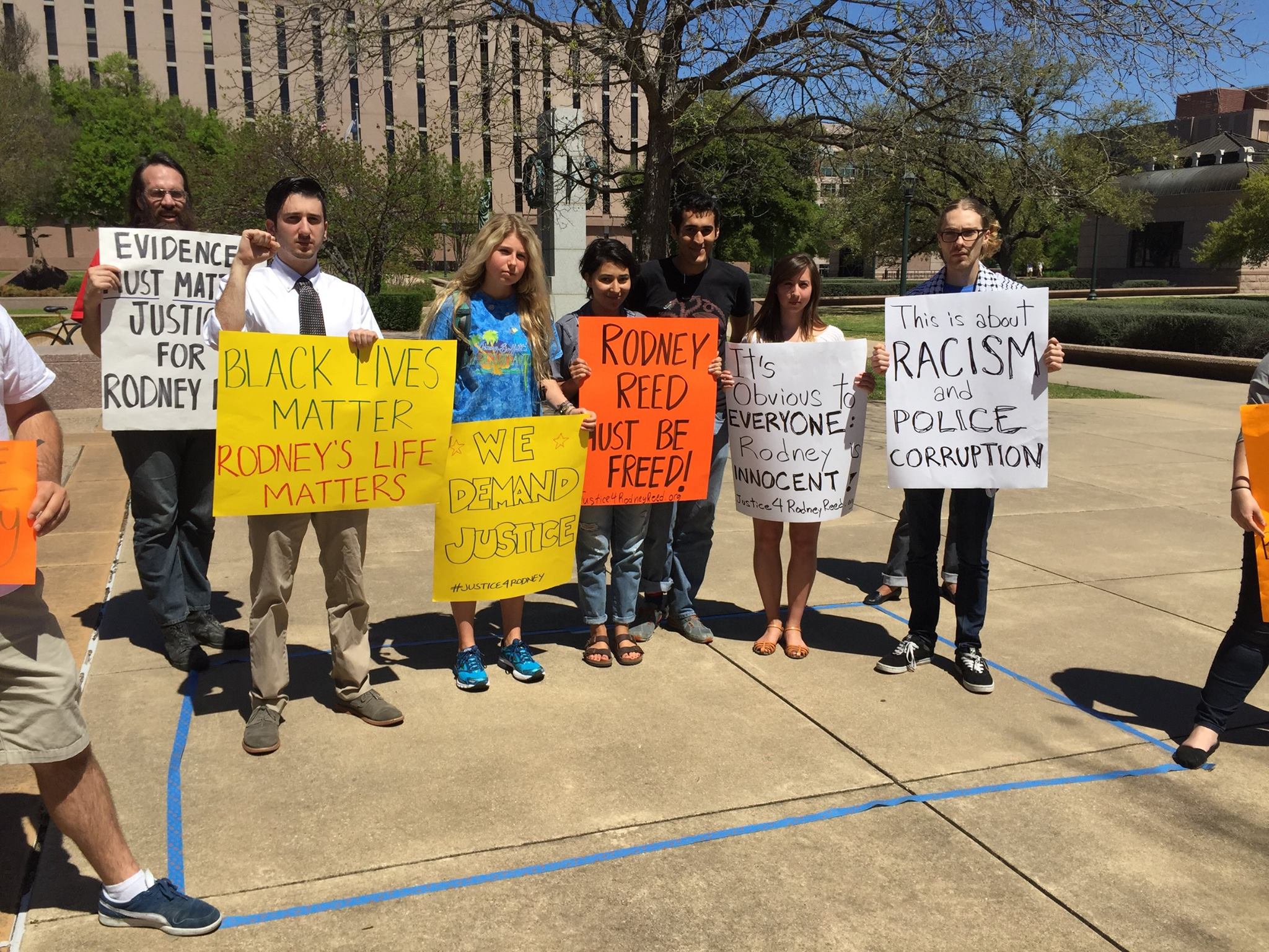 Students in a cell ← Previous Next → Outside the Court of Criminal Appeals, University of Texas students stand inside a 6′ x 10′ area representing the size of cells on Texas death row