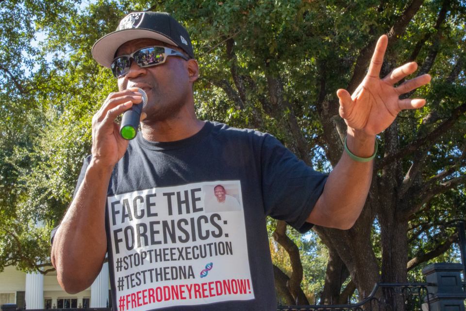 Rodrick speaks at abolition march ← Previous Next → Rodrick Reed out the Governor’s Mansion. Photo by Texas Moratorium Network