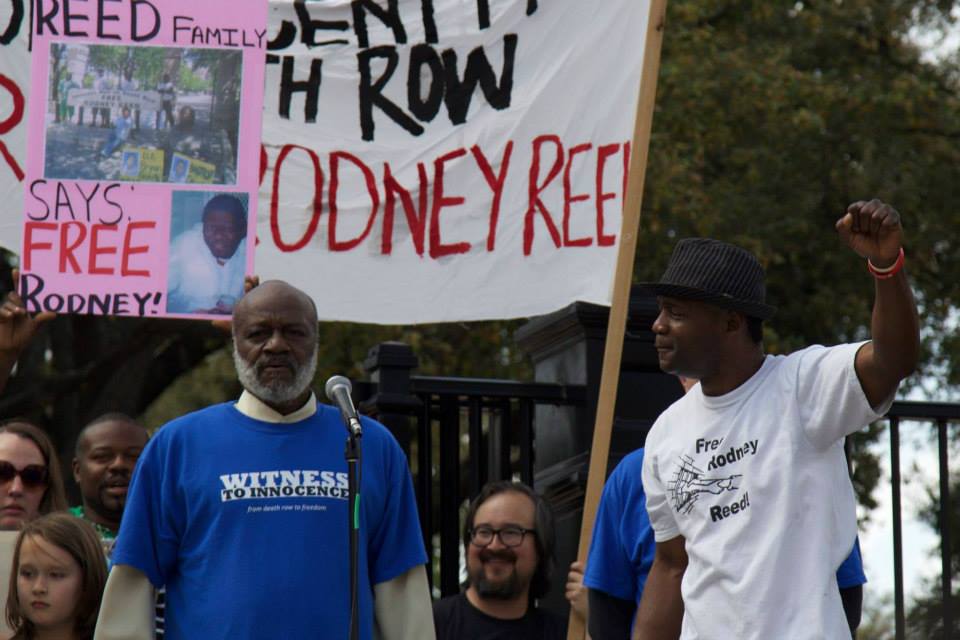 Exonerated death row prisoner Shujaa Graham, member of Witness to Innocence, speaks about his time spent wrongly incarcerated on California’s death row. Rodrick Reed, Rodney’s brother, is on the right. From the “Rally For Justice for Rodney Reed” on Feb. 21, 2015.