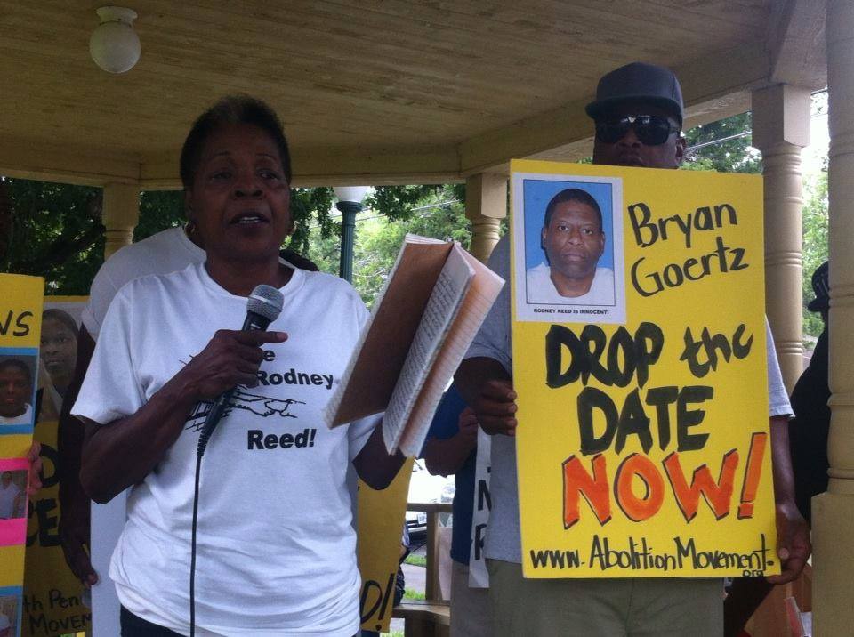 Sandra in the gazebo ← Previous Next → Rodney’s mother, Sandra Reed, speaks on behalf of her son inside the Bastrop Co. Courthouse gazebo Like Loading...