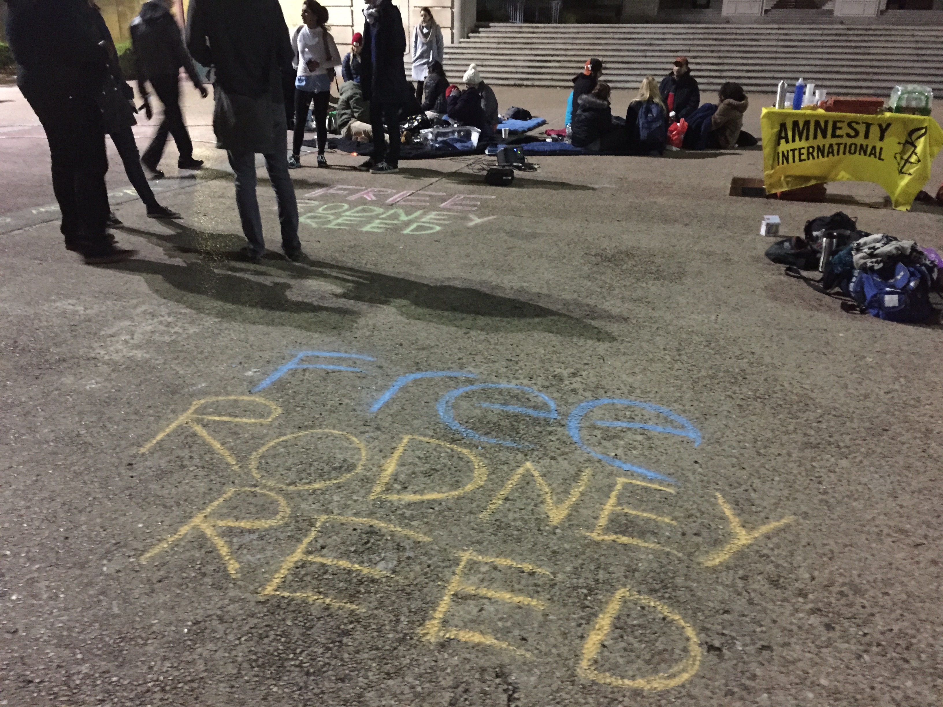 Candlelight Vigil chalk ← Previous Next → University of Texas students held a candlelight vigil for Rodney Reed, camping out all night to bring attention to his case. Photo by Kelly Booker