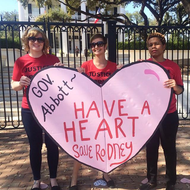 Gov. Abbott: Have a Heart ← Previous Next → Supporters delivered a big valentine to Gov. Greg Abbott on Feb. 14. The heart reads “Gov. Abbott- Have a Heart. Save Rodney”
